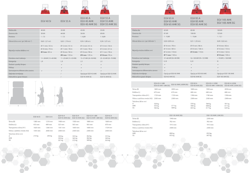 V tabeli tehničnih specifikacij vitlov ponovno preverim, kateri vitli ustrezajo moči mojega traktorja.